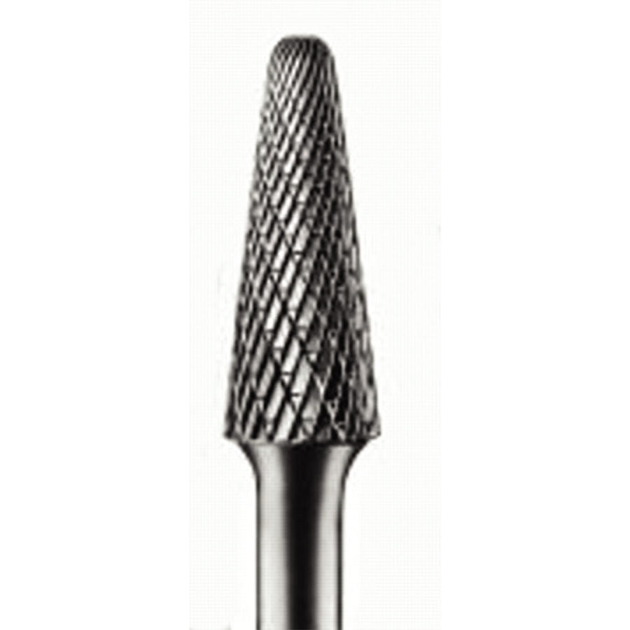 Carbide Taper/Radius Bur Bit, 1/2"Dia. x 1 1/8"L Cut, 1/4" Shank, Alt. Diamond 419-25162 Carbide Taper/Radius Bur Bit, 1/2"Dia. x 1 1/8"L Cut, 1/4" Shank, Alt. Diamond 419-25162